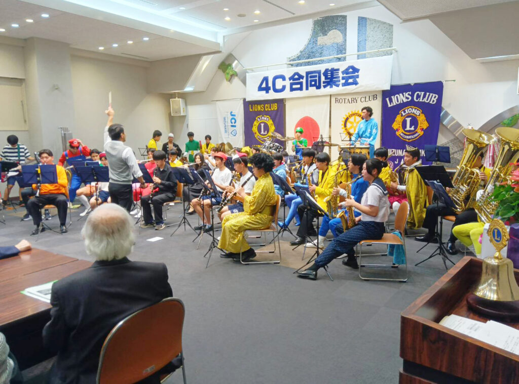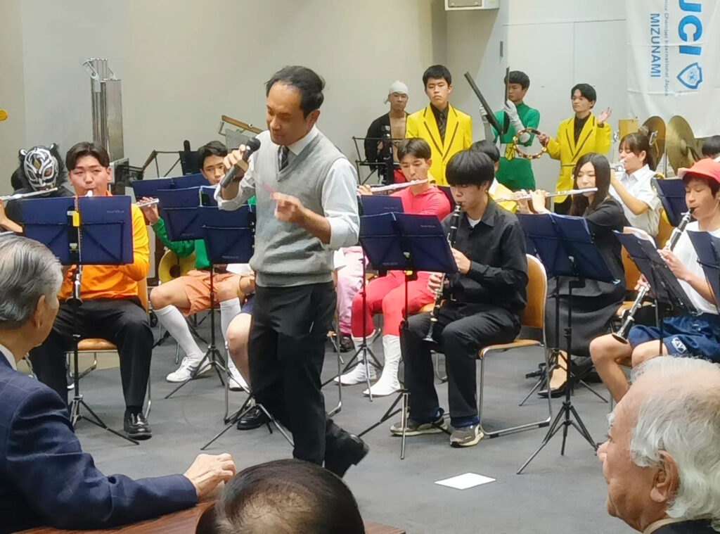 水野市長の祝辞の後、記念公演として「中津川工業高等学校 吹奏楽部」に演奏をしていただきました。